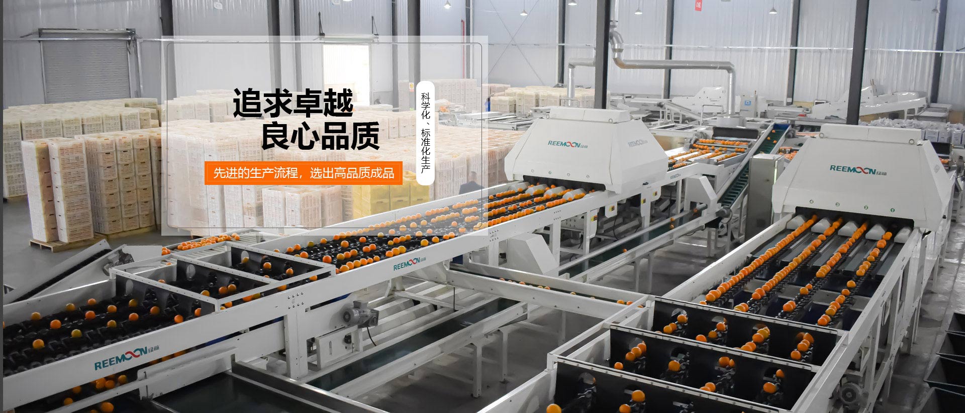 的良好品質(zhì),建立在精細化流程、標準化生產(chǎn)的基礎上。應用輕柔無(wú)創(chuàng )傷的傳送線(xiàn)、獨特的視覺(jué)輔助系統、精細的內部品質(zhì)檢測設備,準確無(wú)誤的區分橙子的顏色、大小、糖度、酸度和密度,保證每個(gè)橙子口感良好。